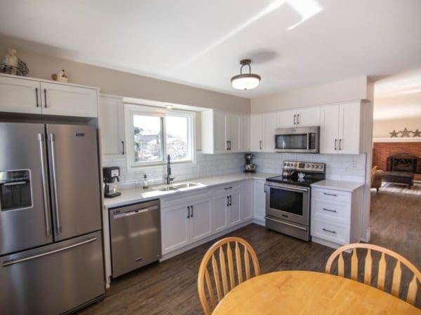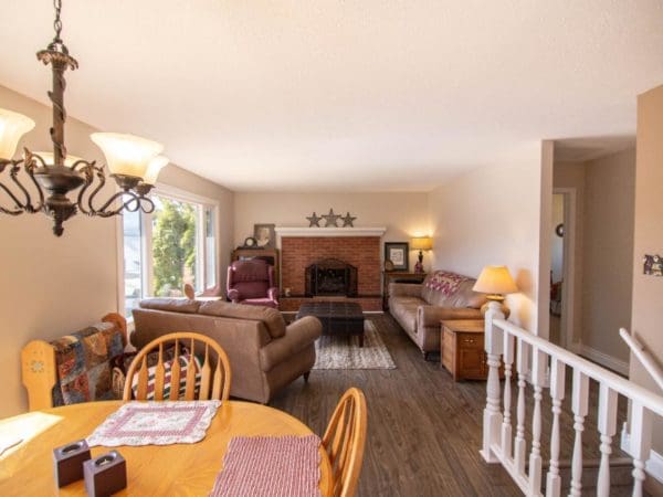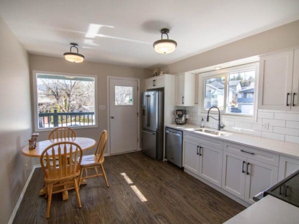 Beautifully renovated 5 bedroom home on sought after Birch Drive close to schools, parks and Elizabeth lake! Be amazed at the well thought out upgrades including a brand new professionally installed kitchen with quartz counter tops, stainless steel appliances, subway tile backsplash, new interior doors, new trim, freshly painted, all new vinyl plank flooring, new carpet going up the stairs, new light fixtures, new windows on the south side, wood stove with WETT inspection, upgraded 2 piece ensuite and much more! The outside of the home has been painted, there’s a new roof, new gutters, 3 year old fence with a fresh coat of stain, good size resurfaced deck with stunning rocky mountain views, pull through RV parking, 10’x12′ storage shed and quick possession is available! (id:21318)