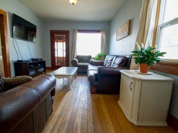 A price point in todays market you can’t beat! This home offers 3 bedrooms and 1 bathroom situated on a mature lot with raised garden beds, apple and plumb trees, goji and honey berries, lots of perennials, a fire pit area and shrubbery that offers all kinds of privacy! Updates include a new roof in 2019, windows, furnace, hot water tank, flooring, chimney, 100amp service, in floor heat in the bathroom and much more! Gas is $79 per month and Hydro is $68 per month. (id:21318)