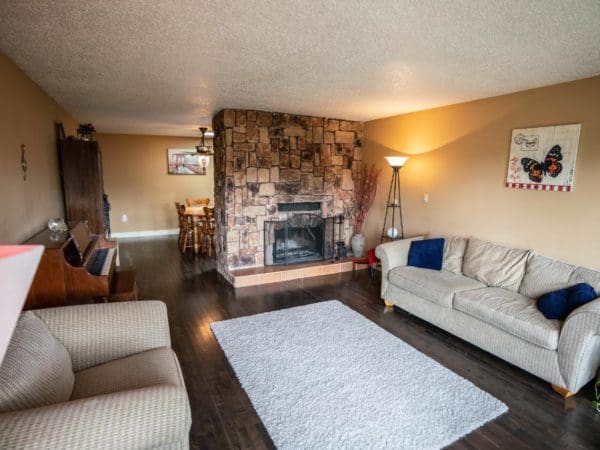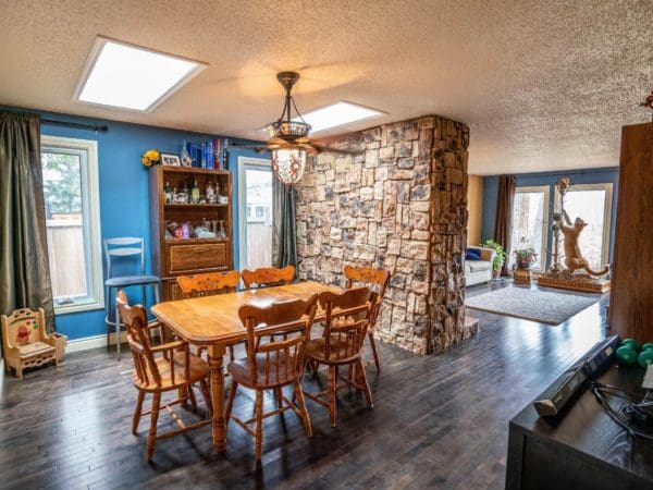 QUICK POSSESSION POSSIBLE! A one of a kind layout in this large & bright main floor living bungalow! It is a must see with a big loft perfect for a 4th bedroom, rec room or den! With quality updates throughout, including a maple kitchen with granite counter tops, slate appliances, eating nook and door leading to spacious deck for your entertaining, two updated bathrooms, a large foyer entrance with a staircase to the loft, updated hardwood, tile and carpet flooring throughout, two stunning wood burning stone fireplaces, cozy family room with three skylights, spacious & bright dining and living rooms, three large bedrooms on the main floor with the master having a walk in closet, three piece en-suite and doors leading to your private deck. Updates also include exterior vertical vinyl siding with extensive rock finishing, stamped concrete patio, large back yard deck, roof (2013), heat pump, central air, hot water heater (2012), new hot tub (2020) all on a quarter of an acre that’s private and fully fenced! (id:21318)