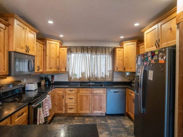 Desirable and unique Brookview location backing on to green space and Joesph Creek! This large 4 bedroom 2.5 bathroom home has gone through lots of upgrades including flooring, paint, trim, beautifully updated kitchen, 6 year old appliances, a huge living room with a bay window that has mountain views, redone 4 piece bathroom, pex plumbing, new windows at the front of the house, new patio doors, blown in insulation, a huge rec room with a gas space heater, a cold room, a possible 5th bedroom or office, and much more! The home is situated on .29 of an acre, has an attached wired and insulated garage, fully landscaped at the back with large rock features, a walk out basement with a 4 year old hot tub and all of this can be yours with quick possession! Call your Realtor today, this one wont last long! (id:21318)