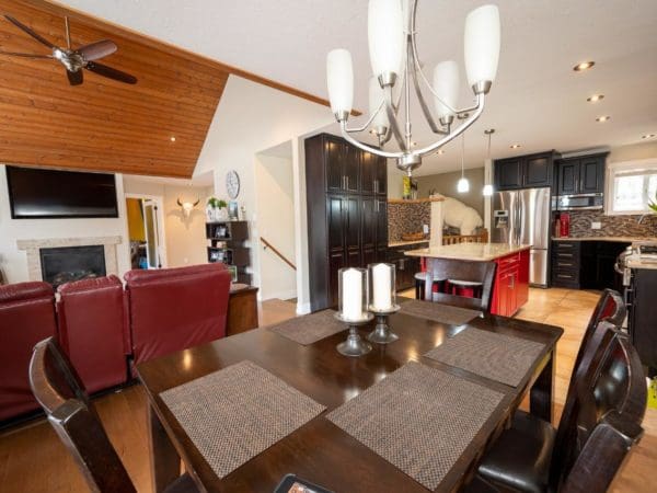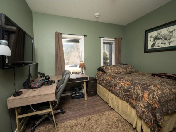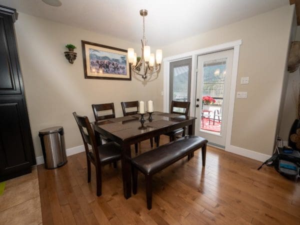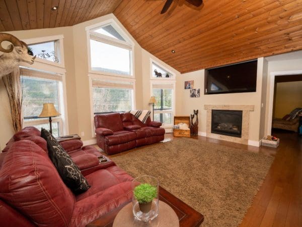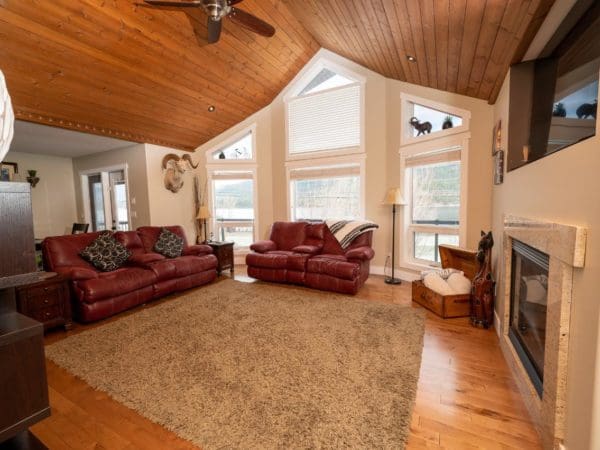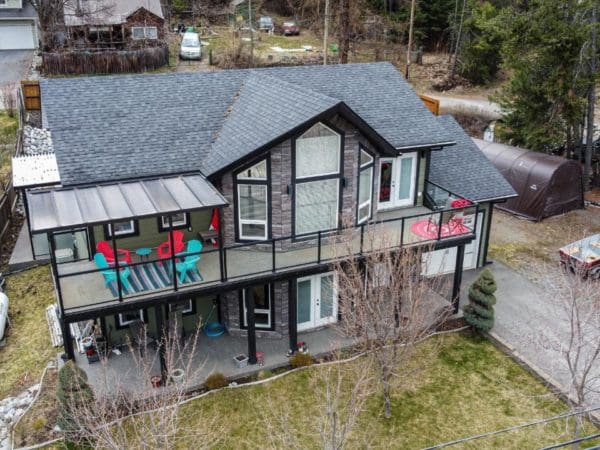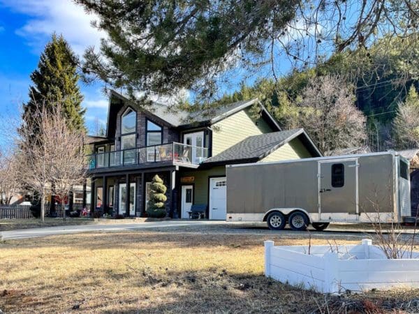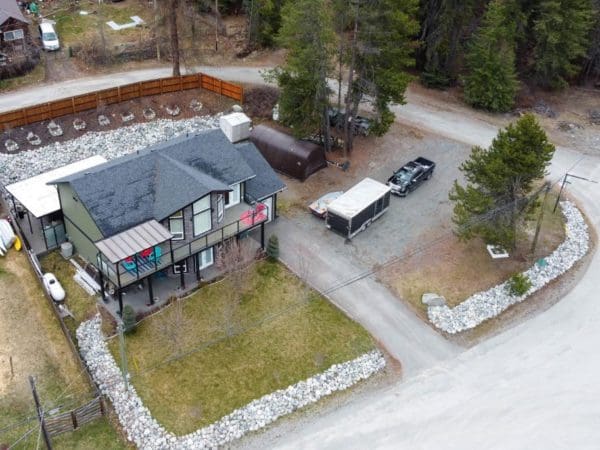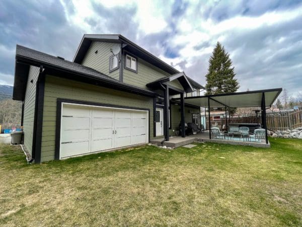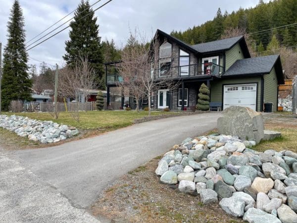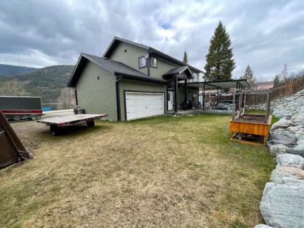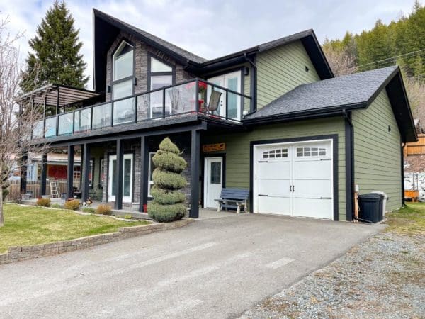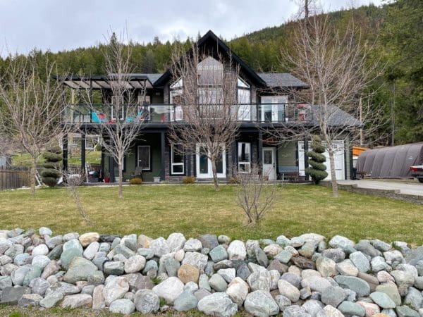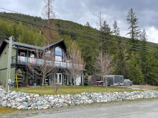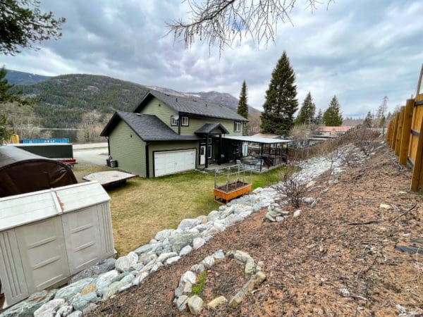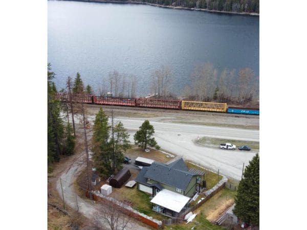 Beautiful quality built home in Moyie BC! This turnkey home sits on almost a quarter of an acre in a great location close to the lake, crown land and the Moyie General Store! Inside is a must see with 3 bedrooms plus an office, a large living room with stained pine vaulted ceilings letting in a terrific views of Moyie Lake and the mountains, a large master bedroom with a huge 5 piece ensuite, a high end kitchen with lots of cupboard and counter space, good size rec room, hot water on demand, central air and a front deck that spans the length of the house! The drive through 24’9×19’4 garage has a single door at the front and a double door at the back with in-floor heat and a welder plug. Outside is complete with a covered deck, hot tub, raised garden bed, fenced, lots of trees including devil blossom cherry lilacs and maple trees in the front! Make this turn key home yours today! (id:49650)