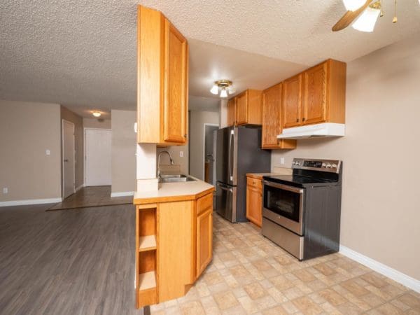 Updated bright corner unit in Shannon Heights! 2 bed, 1 bath unit with updated kitchen cabinets, countertops, flooring, and paint. Beautiful mountain views out both the dining room and second bedroom windows. This building has had updates including siding, windows, balcony doors, hallway carpeting. All of this located within walking distance to the college, hospital, rec plex, schools, shopping, groceries and much more. Call your Realtor (R) today to view!! (id:49650)